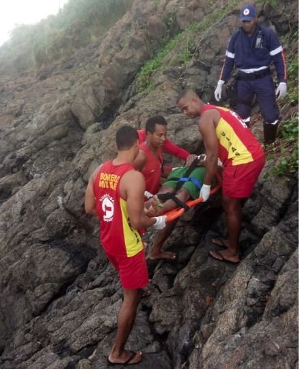 Um homem foi resgatado nas pedras do Porto da Barra, na manhã desta quinta-feira (8). Testemunhas relataram que ele teria caído da balaustrada do Forte São Diogo, por volta das 10h.