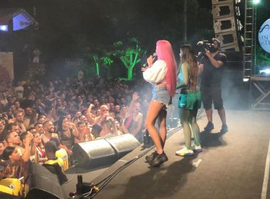 Pressionada por fãs, Anitta dá selinho em Alinne Rosa na Micareta Salvador