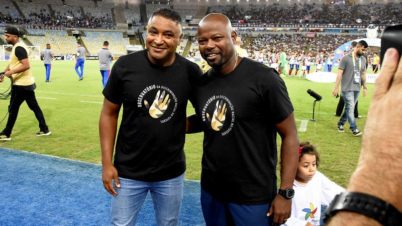 "Com relação à campanha, não deveria chamar atenção ter repercussão grande dois treinadores negros na área técnica, depois de ser protagonistas dentro do campo. Essa é a prova que existe o preconceito, porque é algo que chama atenção. À medida que a gente tenha mais de 50% da população negra e a proporcionalidade não é igual, a gente tem que refletir e se questionar. Se não há preconceito no Brasil, por que os negros têm o nível de escolaridade menor que o dos brancos? Por que a população carcerária, 70% dela é negra? Por que quem morre são os jovens negros no Brasil? Por que os menores salários, entre negros e brancos, são para os negros? Entre as mulheres negras e brancas, são para as negras? Por que que, entre as mulheres, quem mais morre são as mulheres negras? Há diversos tipos de preconceito. Nas conquistas pelas mulheres, por exemplo, hoje nós vemos mulheres no esporte, como você, mas quantas mulheres negras têm comentando esporte? Nós temos que nos perguntar. Se não há preconceito, qual a resposta? Para mim, nós vivemos um preconceito estrutural, institucionalizado", questionou Roger.