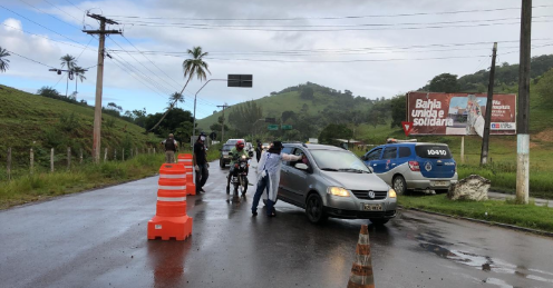 A barreira está localizada no Trevo da Jueirana e conta com a participação das Polícias Militar e Civil, bem como de profissionais da saúde da Secretaria Municipal de Saúde.