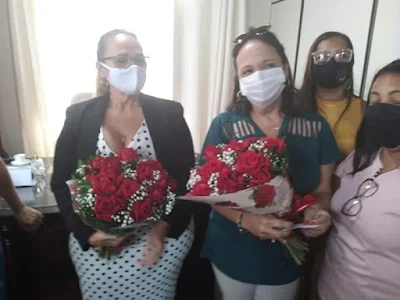 A comissão levou dois lindos Buquê de Flores, um para a Prefeita e outro para a Secretária de Educação Professora Isleide Embiruçu .