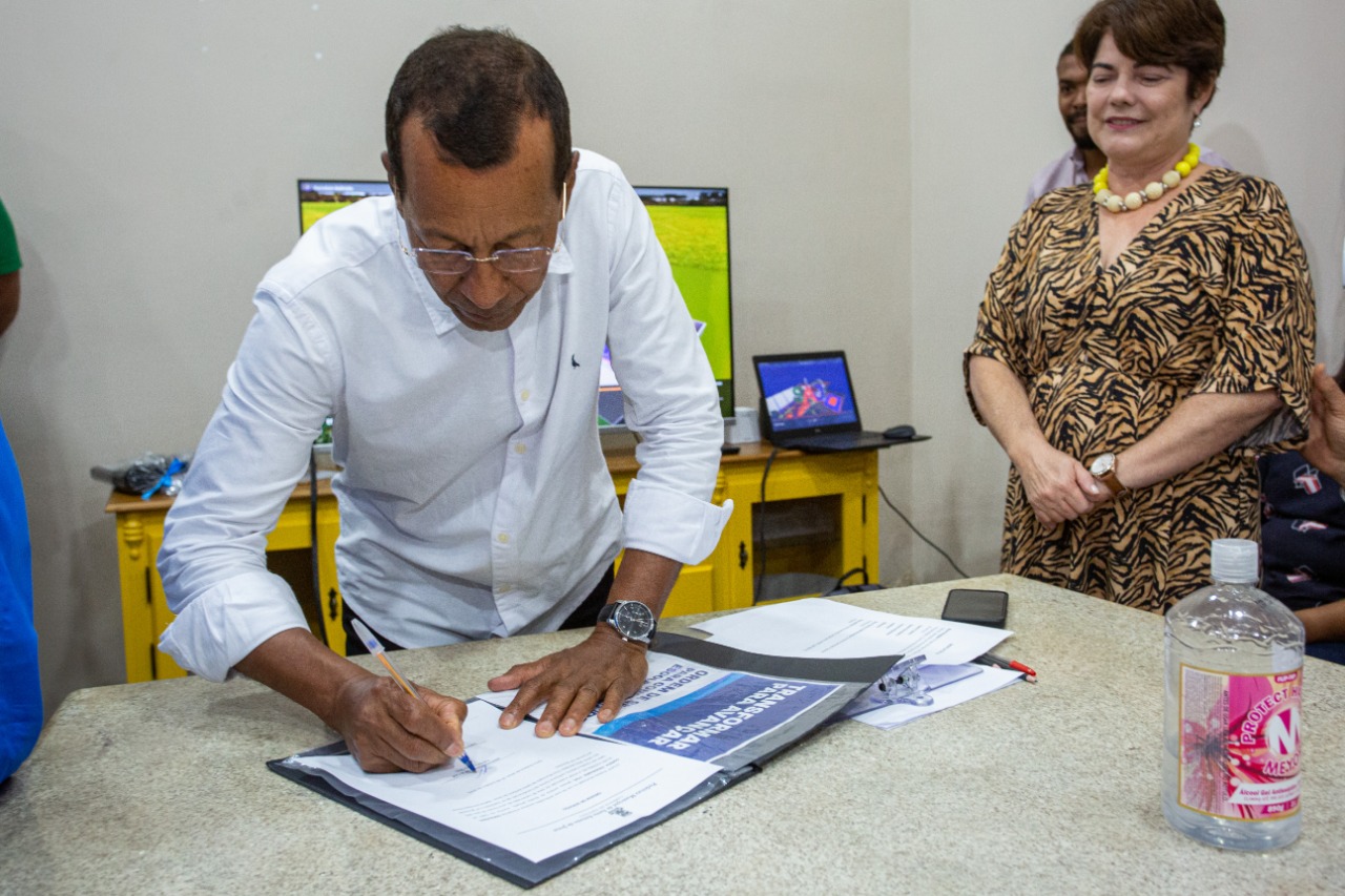 Aconteceu, na manhã desta terça-feira (01), no Paço Municipal, a assinatura da ordem de serviço para a construção de uma nova escola para a rede municipal de ensino. Estiveram presentes no evento o prefeito, Genival Deolino, a secretária de educação, Maria Renilda Barreto, a superintendente de convênios, Lana Marques, o líder do governo na Câmara de Vereadores, Caique Barbosa, e demais secretários de governo e vereadores da base.