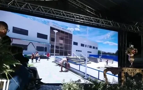 O assessor jurídico da Educação Dr.Pedro já emocionado, chamou o engenheiro Doronaldo Neto, responsável pelas obras da Educação de Nazaré, para mostrar todo projeto da nova escola em 3D e o site PIRÔPO NEWS, mostra com exclusividade para toda Bahia.