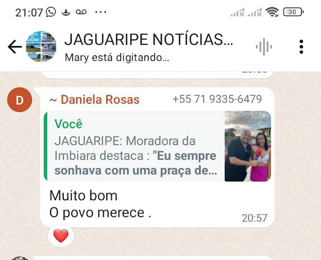 Após matéria circular nos grupos de whatsapp do município, a reação foi super positiva.